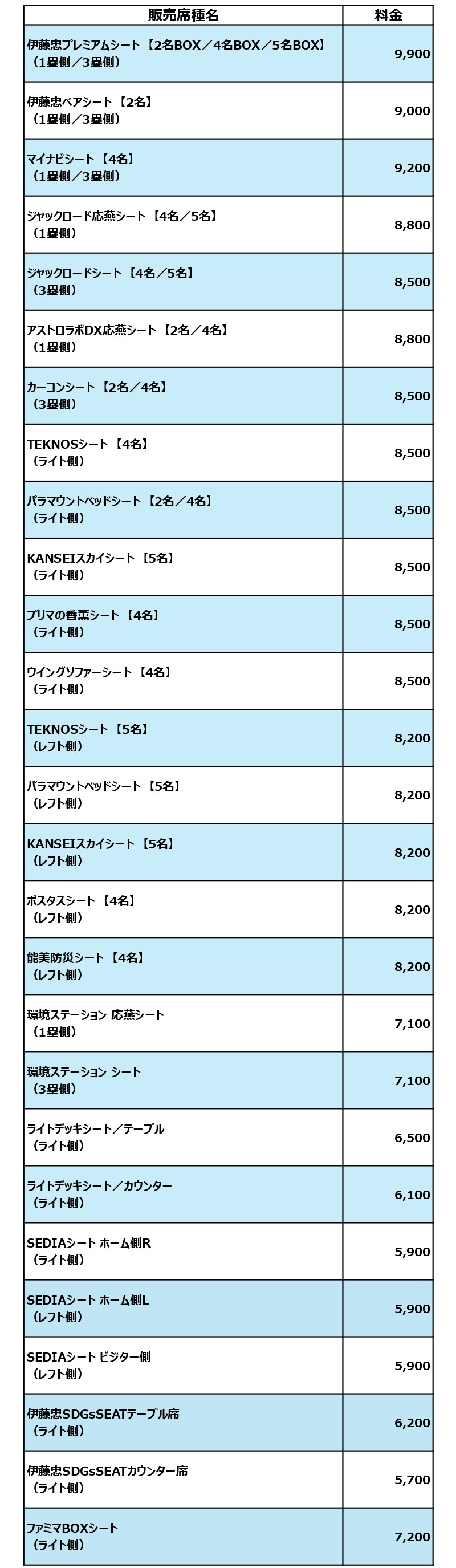 ■ 対象席種 / 価格(1席あたり)